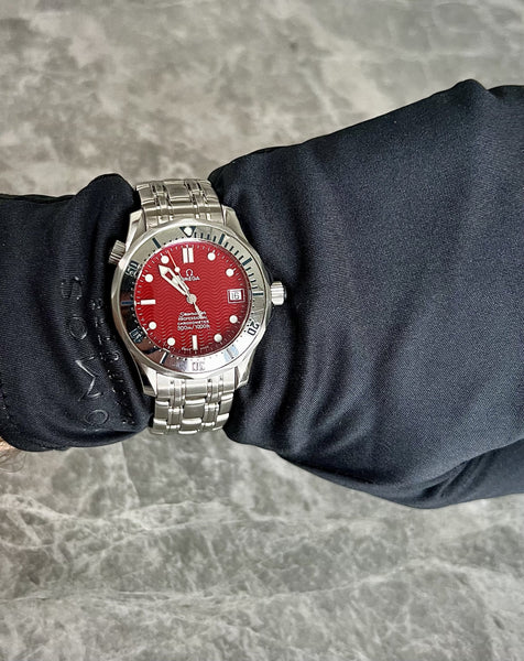 This Omega Seamaster Diver 300M, reference 2552.61, is a rare and vibrant timepiece that was exclusively produced for the Japanese market. Its striking red wave dial makes it a standout in the Seamaster lineup, offering a bold yet sophisticated look. Compact in size at 36.25mm, it’s a versatile watch that’s perfect for those who appreciate unique designs and precision craftsmanship.